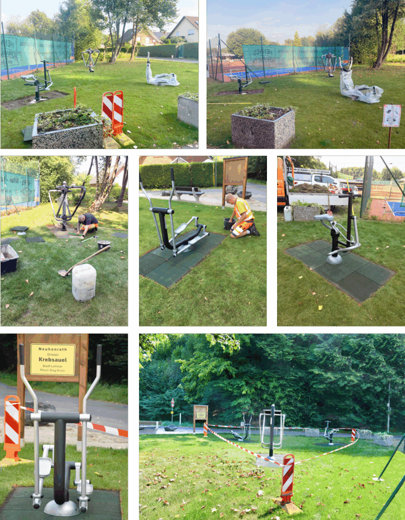 Der Bauhof Lohmar hat heute drei neue Fitnessgeräte für Erwachsene auf dem Tennisplatzeck in Krebsauel installiert. Damit entsteht ein attraktiver Treffpunkt für alle, die draußen aktiv sein möchten – ganz ohne Mitgliedschaft oder Eintritt.